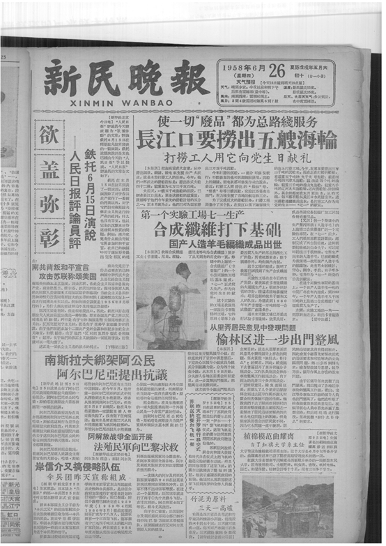 (1958年6月26日,新民晚报报道郁铭芳所在的实验工厂为生产合成纤维打下基础) 1959年 10月,参与研制的锦纶渔网参展中华人民共和国国庆十周年成就展。 11月,经上海市纺织工业局批准,担任上海合成纤维实验工厂生产技术科副科长。