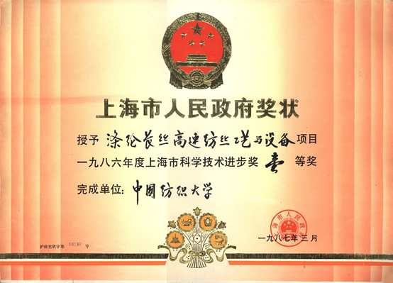 (上海市科学技术进步奖-涤纶长丝高速纺丝工艺与设备壹等奖) 9月29日至10月24日,与上海化纤公司经理薛纪发、上海市纺织局科研处长黄翼青、上海合成纤维研究所工程师程厚一起赴意大利考察非织造布的工艺水平、应用市场和开发前景。经过考察比较,决定从意大利进口设备。