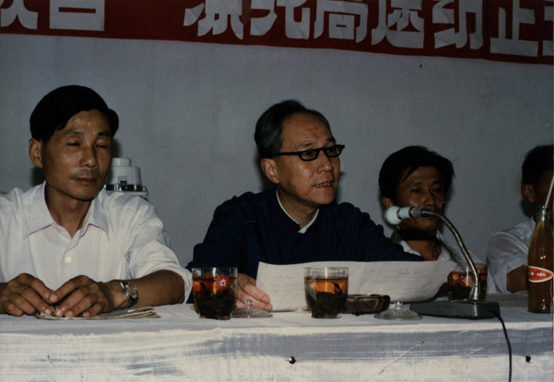 (1978年9月,江苏无锡,郁铭芳参加国家科委化纤专业组会议合影) 10月,组织领导纺织工业部重点科研项目“涤纶长丝高速纺丝工艺与设备”研究。该项目1981年3月通过纺织工业部小试鉴定,1984年12月通过纺织工业部中试鉴定,为国内独立自主发展长丝高速纺丝奠定基础。