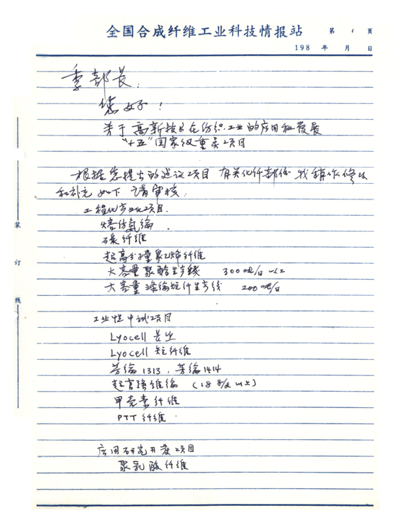 (1979年5月26日,郁铭芳关于提高碳纤维强度的情况汇报手稿) 1980年 11月11日至12月11日,参加联合国工业发展组织安排的纺织工业部涤纶长丝纺丝和变形技术考察小组,赴美国参观杜邦公司、孟山都公司、塞拉尼斯公司、纽约理工公司、麻省理工公司和费城纺织公司。考察组认为高速纺丝技术已成为涤纶长丝主要生产工艺路线。 12月11日,经上海纺织工业局批准,任上海合成纤维研究所所长兼总工程师。