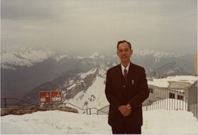 (1983年5月,西德,郁铭芳考察Banag公司)左 (1983,瑞士,郁铭芳考察单人照)右 4月,组织领导由国家经委、计委、科委、财政部和纺织部下达的“六五”计划国家重点科技攻关项目“涤纶长丝高速纺丝机及其纺丝工艺的研究”。项目于1985年12月通过纺织工业部主持的鉴定,1987年3月获1986年度上海市科技进步一等奖,1987年7月获国家科技进步二等奖。项目的研制成功,标志着我国自力更生掌握了长丝高速纺丝的整套技术,打破了国外技术垄断。