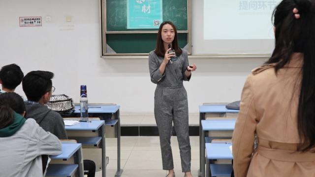 杨亦可学姐现在是一家创业公司的高级咨询顾问,全面负责公司管理咨询及培训业务。在此之前她曾在某大型国企任战略情报分析师一职,有着丰富的求职经验。她首先向我们对毕业后的三个方向,即读研、留学和工作,一一进行了详细的介绍。随后她向同学们介绍了空杯心态和复盘的概念,提醒同学们不要自满,因为社会上有许多优秀的人才,我们应当锐意进取,认真踏实学习每一门课程,脚踏实地地做好该做的每一件事,为未来的路铺好每一块石头,避免多走一些不必要的弯路。
