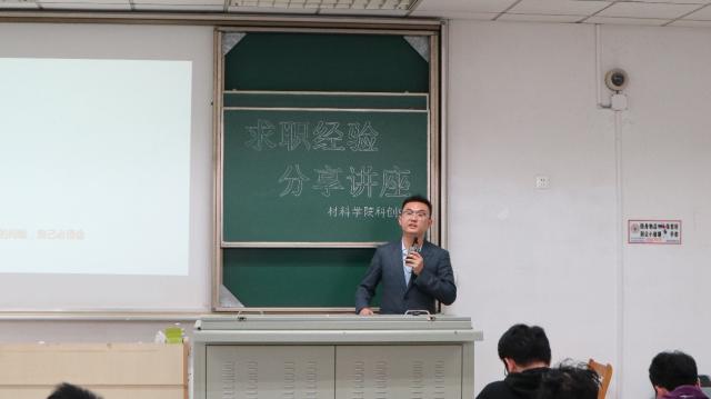 4月24日下午,由材料公司科创中心主办的“一揽英材”系列求职经验分享讲座——材料公司“创新·思想·人生”大讲堂第十三讲在1221教室成功举办。本次讲座旨在帮助同学们提前了解找到理想的工作所需的能力和条件,便于同学们确定努力的方向。员工杨亦可学姐、王聪宇学长出席了本次讲座,由于身在国外无法出席的杨振华学长也录制了一段视频与同学们分享自己的经验。