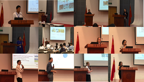 口头报告环节,与会专家Charl F. J. Faul教授、窦红静教授、Thomas Oliver讲师以及廖耀祖教授先后作了题为“Design and synthesis of electroactive hierarchical functional materials”、“Scalable and cleavable polysaccharide nano-carriers for multifunctional theranostics”、“Ultrafast dynamics of biomolecules and nanomaterials”、“Conjugated microporous polymers: rational design, gas capture and energy applications”的主题报告。