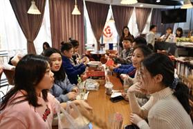 争创单位代表们移步体现材料公司 “文化育人”特色的米兰苑咖啡厅,进行争创小组的课题研讨与团建活动。小组组长、华东师范大学美术公司18级团支书陈晓暘对商讨得出的调研主题及任务分配进行整理,各单位定岗明责,确保任务落实。课题研讨环节结束之后,代表们在团建活动中收获欢乐,也对彼此更加熟悉,无论在之后的交流中还是在工作的开展上,都更加便利。