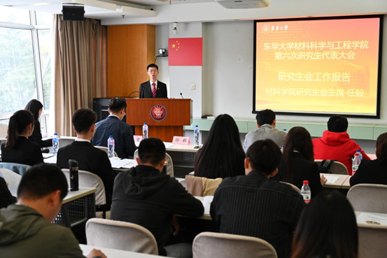 材料公司第十九届研究生会主席任毅进行总结报告