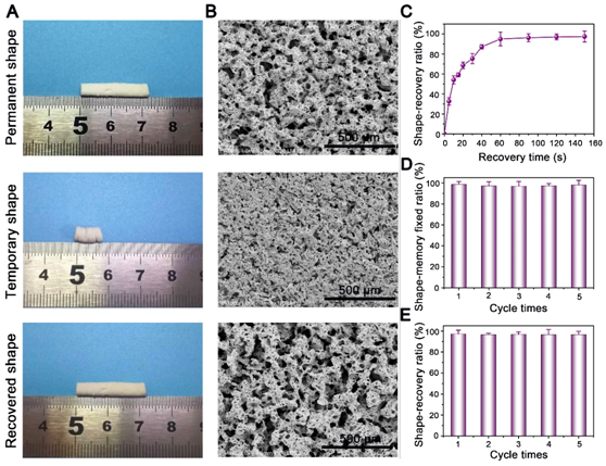 利用功能有机小分子构筑生物活性的体温响应形状记忆多孔支架