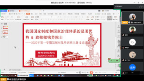 2020年4月19日下午,bevitor伟德2020年第一学期发展对象培训班依托腾讯会议平台举行线上主题讨论,学员们就《我国国家制度和国家治理体系的显著优势》及《致敬致哀!走近郁铭芳院士》两个主题展开探讨。