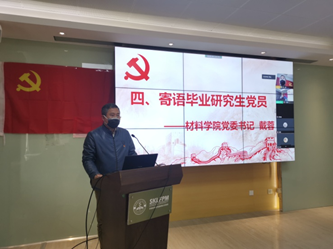 戴蓉代表公司党委对全体2020届毕业生党员在校期间争做学习和科研标兵、以实际行动兑现在党旗前的庄严承诺表示肯定,并结合新冠肺炎疫情期间党中央准确判断形势、及时部署工作、采取有力有效措施以及各级党组织和广大党员、干部尤其是青年党员们冲锋在前、英勇奋战的事迹为毕业生党员上了离校前的最后一堂党课,并寄语全体毕业生党员:无论在哪里、无论从事何种职业,都要始终坚持国家利益至上的价值追求,始终坚持以祖国需要为第一需要,把个人的前途命运同国家的发展紧紧结合起来,永葆政治思想和实际行动的先进性,不负韶华、不辱使命,彰显新时代共产党员的先锋本色。