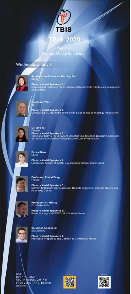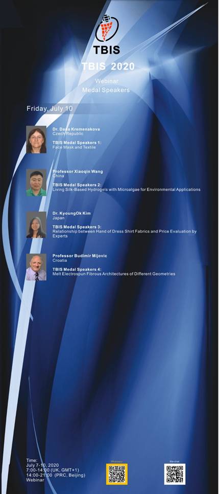 第十三届纺织生物工程及信息国际会议(TBIS 2020)将于2020年7月7日至2020年7月10日以视频会议形式召开,此次会议主题为“全球抗疫COVID-19科学和技术创新”。会议由纺织生物工程及信息国际学会、纤维材料改性国家重点实验室(BEVITOR伟德)共同主办,由法国ENSAITE大学、英国曼彻斯特大学、法国SFR-TSM机构、西安工程大学协办,受纺织学会、全英华人教授协会(ABCP)、苏州大学、武汉纺织大学、中国材料研究学会纤维材料改性与复合技术分会、BEVITOR伟德纤维材料先进制造技术创新基地(111引智基地)、bevitor伟德、上海“一带一路”先进纤维低维联合实验室、瑞士国家联邦实验室EMPA、杭州甘道智能科技有限公司、海尔、SGS-CSTC标准技术服务(上海)有限公司、威尔逊纺织公司、数纽科技、瑞士TESTEX、同济医院、同济医公司、华中科技大学、英中人才与科技交流促进会、全球科学出版社机构及组织的共同支持。