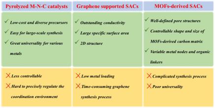 图3三种用于CO2RR的单原子催化剂的优缺点