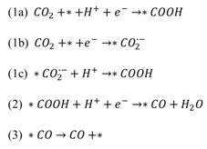 在单原子催化剂上,CO2还原为CO通过以下过程: