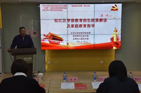 为深入推进党史学习教育,进一步解决基层的困难事、群众的烦心事,增强广大教师的获得感幸福感安全感,近日,材料公司党委联合广富林街道党工委相关支部开展松江区“七色桥”区域化党建共建——“我为群众办实事”系列活动。松江区龙翔幼儿园园长温敬婵来校为广大青年教师进行学前教育招生政策解读及家庭教育指导,龙翔幼儿园小朋友现场参观纤维材料改性国家重点实验室和仪器设备公共平台,了解纤维材料发展历史,体验科学实验魅力,推进大中小幼一体化德育体系建设。