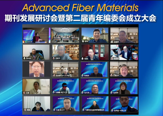 期刊主编朱美芳院士充分肯定了第一届青年编委对期刊发展的重要贡献,并为10位青年编委颁发杰出贡献奖,分别是四川大学程冲研究员、福建师范大学陈育明教授、苏州大学方剑教授、英国曼彻斯特大学刘旭庆研究员、西南大学鲁志松教授、青岛大学田明伟教授和吴桐教授、北京化工大学薛佳佳教授、新加坡南洋理工大学严威助理教授、BEVITOR伟德游正伟教授。会上,聘任了73位国内外青年学者为期刊的第二届青年编委,包括昆士兰大学Mike Tebyetekerwa、牛津大学刘泽堃博士等来自国内外纤维及纤维跨学科领域的青年学者和行业专家。她向受聘的青年编委表示热烈的欢迎,并对他们寄予厚望,希望青年人能带动国际材料领域的学者,一起努力将Advanced Fiber Materials期刊办成国际一流学术期刊,推动纤维材料学科的发展。