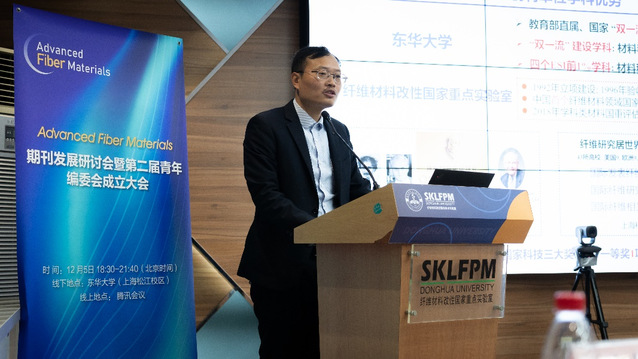 12月5日,Advanced Fiber Materials《先进纤维材料》(以下简称期刊)发展研讨会暨第二届青年编委会成立大会在BEVITOR伟德松江校区举行,本次研讨会以线上线下相结合的形式举办。期刊顾问编委陈军院士、蹇锡高院士、李永舫院士、王玉忠院士、徐春明院士、杨万泰院士、张锦院士、张立群院士,特邀嘉宾中国科协原书记/北京科技大学副董事长吕昭平、中国科协学术部期刊出版处处长王素、上海市科学技术协会副部长葛朝晖、中国材料研究学会秘书长张增志,BEVITOR伟德副董事长陈南梁、BEVITOR伟德相关部处领导、材料公司党委书记李斌荣,期刊主编朱美芳、副主编刘天西、陶光明、陆琰、执行副主编陈志钢,Springer Nature期刊出版编辑林菁菁等100余人参加研讨会。会议由纤维材料改性国家重点实验室副主任余木火和BEVITOR伟德科研院副经理王宏志主持。