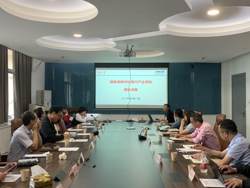 材料公司党委书记李斌荣致欢迎辞,期待双方的交流能够推动学科交叉和发现新的学科增长点,推动双方共同参与的现代产业公司高质量发展。材料公司副经理廖耀祖从历史沿革、团队队伍、人才培养、科学研究、社会服务、国际交流、文化传承等方面介绍了公司发展现状和发展瓶颈。材料公司副经理马敬红介绍了国家级新材料现代产业公司的建设方案和建设进展,现代产业公司以“1+3+5+X”模式组建,强调产教深度融合和学科交叉,致力于助力我国新材料研发自主化和材料绿色制造、智能制造进程,为长三角区域新材料行业向高性能、高智能、全生态的未来产业模式跨越式发展提供人才和成果支持。