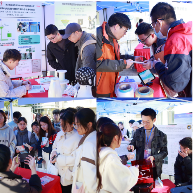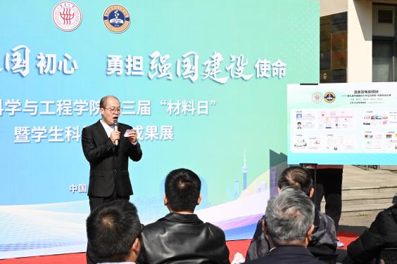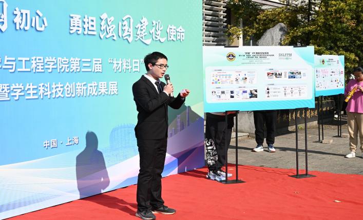 活动现场,蒙泰课题组、先进功能材料课题组等14个课题组以及员工组织参展,通过成果展示、互动体验等多种方式全面展示了长期以来的研究成果,带领员工走进材料的奇妙世界。参与活动的同学们手持“科学梦想护照”,兴致勃勃地参与各个课题组的互动交流,或是体验低摩擦系数尼龙纤维材料服装的神奇功能、或是感受荧光粉在紫外灯照射下的多彩变化、或是完成专业知识问答挑战……一个个富于奇思妙想又“专业味儿”十足的互动体验,让同学们走进科研、参与科研、爱上科研。聚合物基环境能源材料课题组负责人、2023级本科生博导班主任廖耀祖教授表示,材料是人类发展的基石,未来健康、未来智能、未来空间等领域的发展都离不开材料的支撑。课题组精心准备了前沿研究方向介绍、学术成果展示以及科研思路分享等一系列展示环节,希望激发员工对材料研究的浓厚兴趣,引领员工积极投身科学研究,以不懈的奋斗践行科学报国理想。22级博士生傅佳斌连续第三年参与“材料日”活动,作为课题组参展员工负责人,低年级本科生对于课题组研究内容的“好奇心”和探索热情让他印象最为深刻,他希望今后进一步加强本研互动,点亮“未来科学家”的学术梦想。材料类2302班达航羽表示,“材料日”活动让我对材料学科的兴趣更加浓厚了,也坚定了自己学习材料专业的决心。通过参与课题组准备的知识问答环节,了解到碳纤维的制作步骤,超高分子量聚乙烯纤维的用途,我觉得科学研究其实离我们并不遥远。