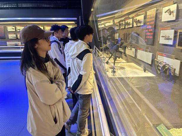 (同学们仔细参观轻兵器陈列馆)