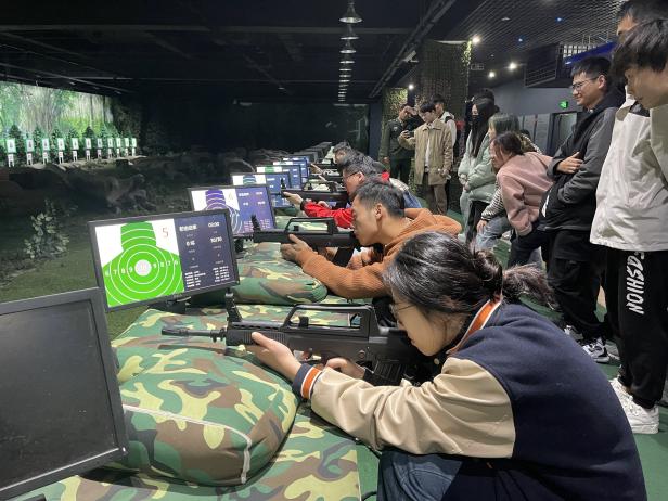 (同学们体验射击打靶项目)