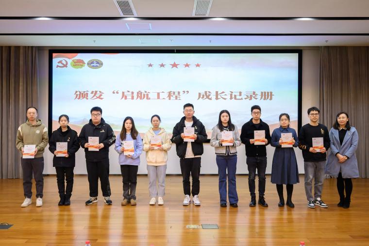 (向预备党员颁发“启航工程”成长记录册)
