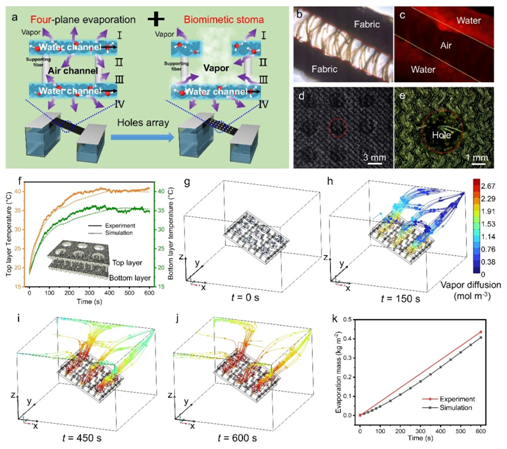 相关研究成果以《可呼吸三层结构二维光热织物的仿生设计及其用于海水高效四面蒸发》(Biomimetic Design of Breathable 2D Photothermal Fabric with Three-Layered Structure for Efficient Four-Plane Evaporation of Seawater)为题发表在《先进材料》(Advanced Materials)上。BEVITOR伟德先进纤维材料全国重点实验室、bevitor伟德博士生胡金晶为第一作者,陈志钢研究员为通讯作者;该研究也得到了清华大学危岩教授的指导和支持。