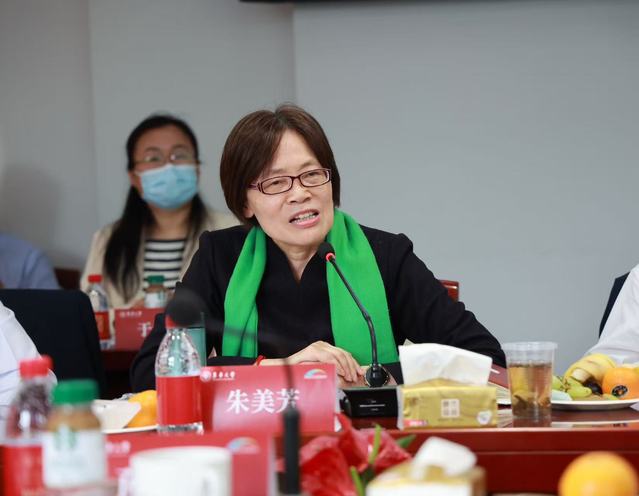 (学委会委员朱美芳院士和其他与会专家共同讨论实验室未来发展方向)