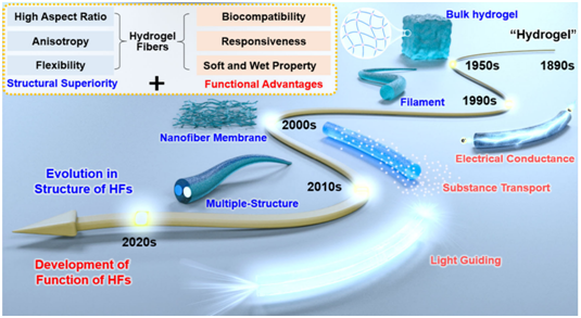 图2. 水凝胶纤维从设计、合成到应用的概述图